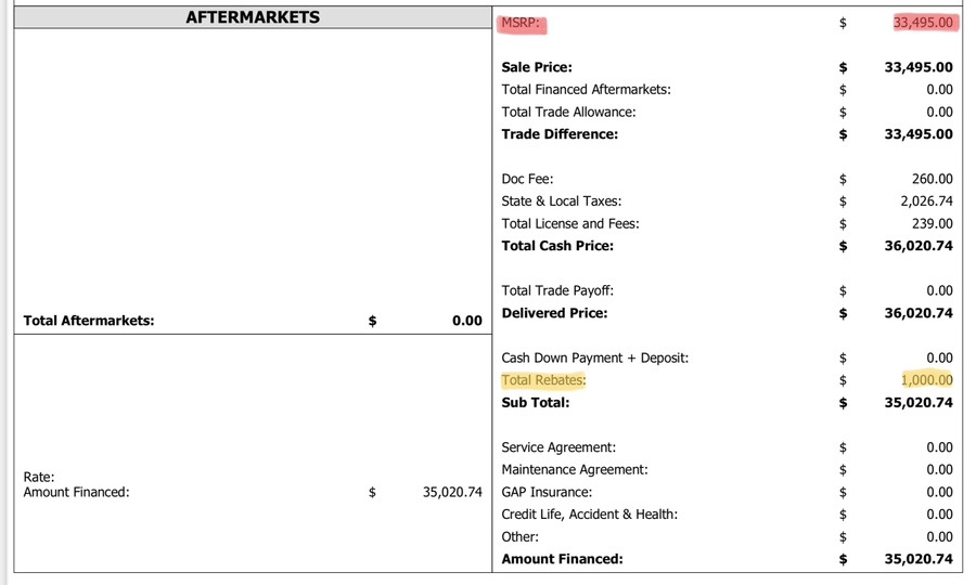 3. 견적 받기 – MSRP, Doc Fee, Tax, Rebate 알아두기